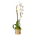 Single stem waterfall orchid plant, available in white and purple. Delivered in a gold or white container.