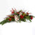 Eve, a long lasting seasonal mix of holiday greenery and fresh flowers, decorated with ribbons and berries. This arrangement is designed to fit perfectly on a room divider in suite or elongated table.