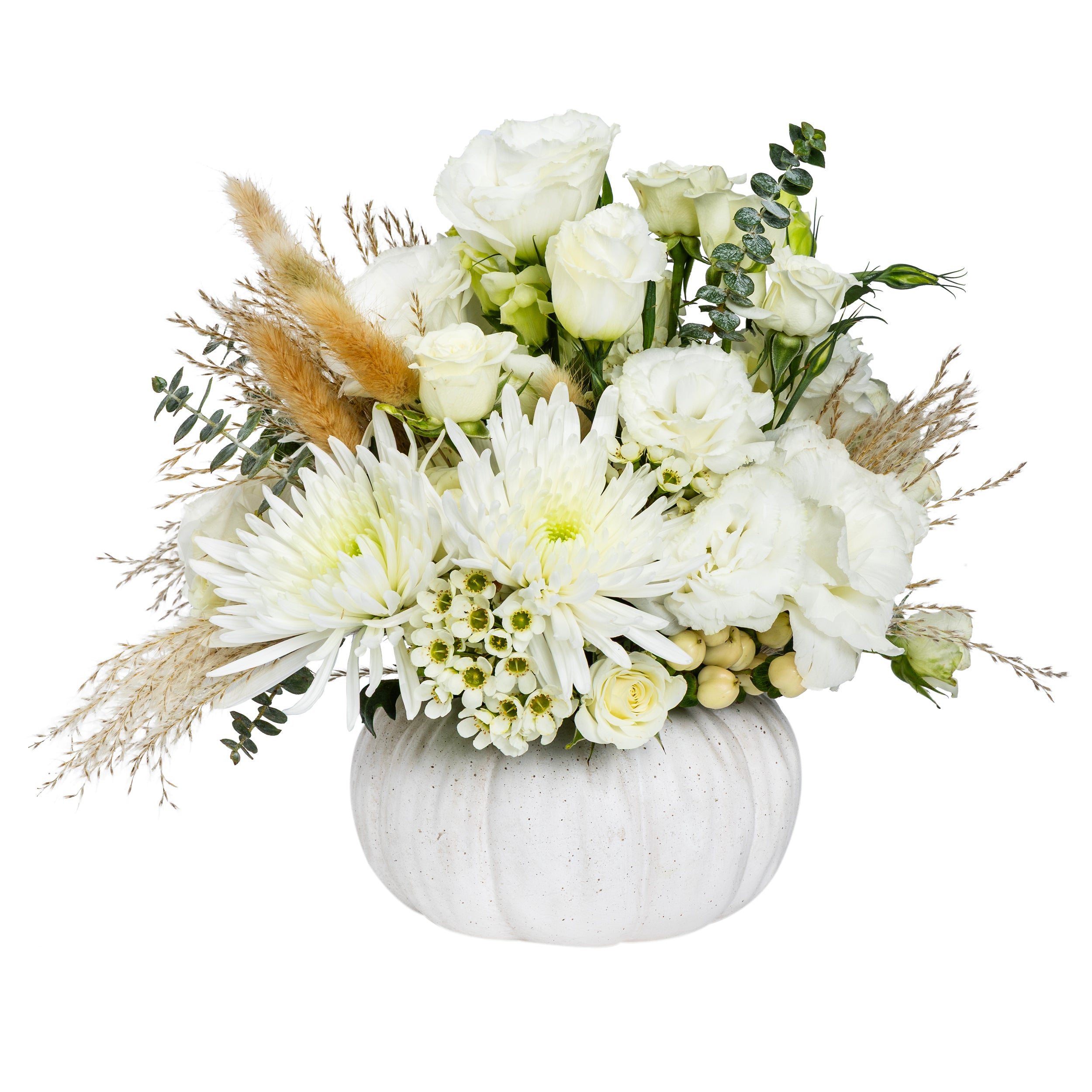 Perfect for any occasion, this beautiful display comes with everything you need to welcome Autumn. All white floral arrangement delivered in a white ceramic planter Glazed Maple pecans   Sugarfina Milk Chocolate Caramel apple bar 3.0 oz  Our gifts are delivered within The Venetian Resort and...