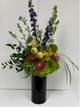 ***ON SITE VENDOR*** Medium ShortApprox. 20”T X 14”W  contains yellow and orange Pin cushions proteas, Bells of Ireland, Liatris, Larkspur, or Bella donna,  Craspidia, Trick, Hydrangea, assorted tropical foliage   Substitution Policy We hand-design each arrangement as close to the picture as possible. Similar substitutions...