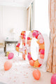 • 2 large 40"inch numbered balloons in silver on bed or pony wall ** Please specify in special instructions which birthday you are celebrating