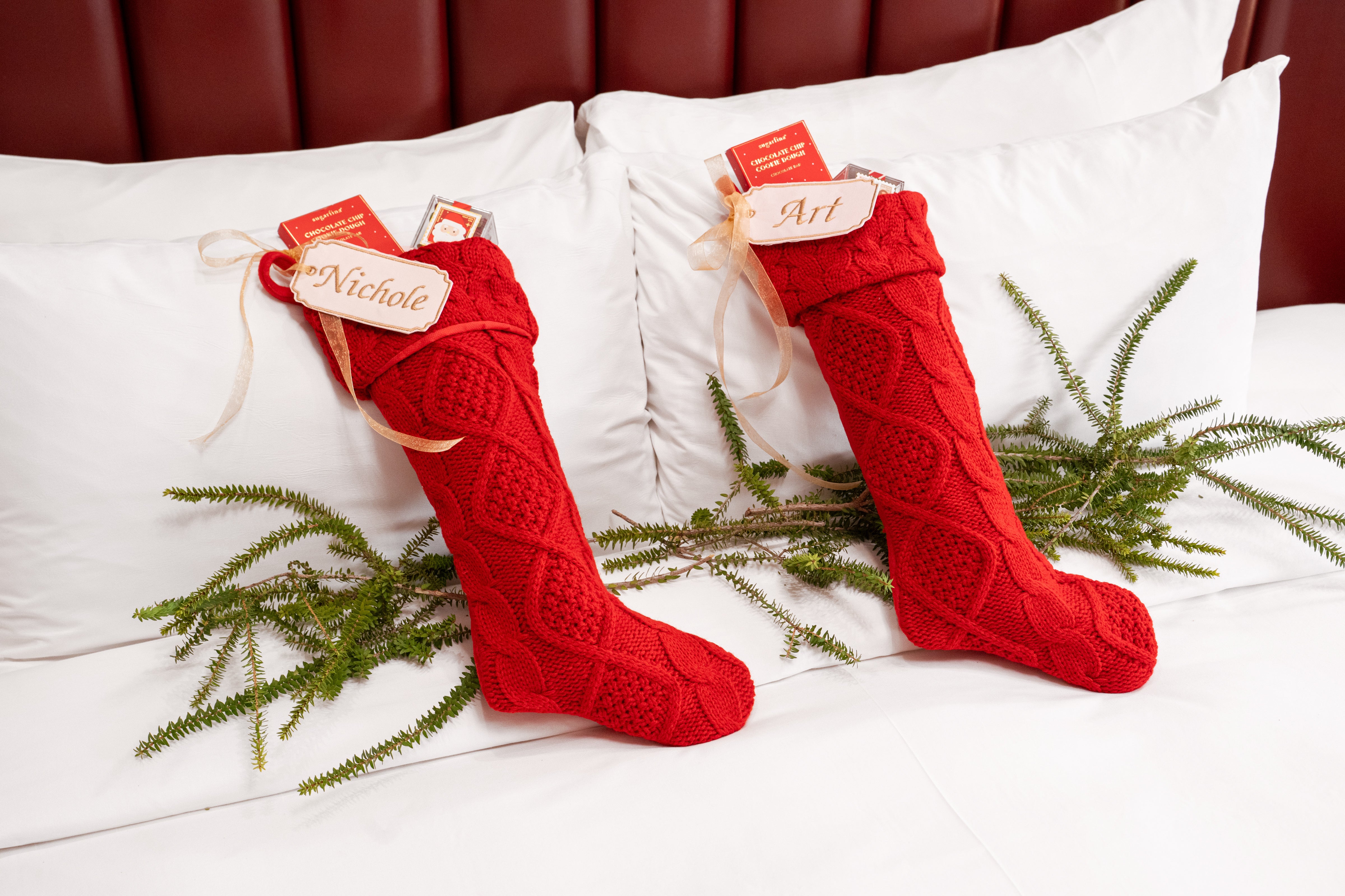 2 Holiday custom keepsake embroidered (Up to ten letters) stockings with: