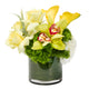 We hand-design each arrangement as close to the picture as possible. Similar substitutions may be made for flowers or container, depending on availability.