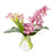 Simple and elegant arrangement of cymbidium orchids and mini calla lilies in a modern clear glass vase. Long lasting and Non-fragrant