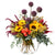 Bold, bright and warm colors mix of roses, sunflowers, allium and seasonal flowers and fillers with seasonal flowers designed in a large moon vase.